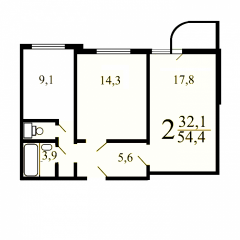 Общая площадь: 54 Кв.м.